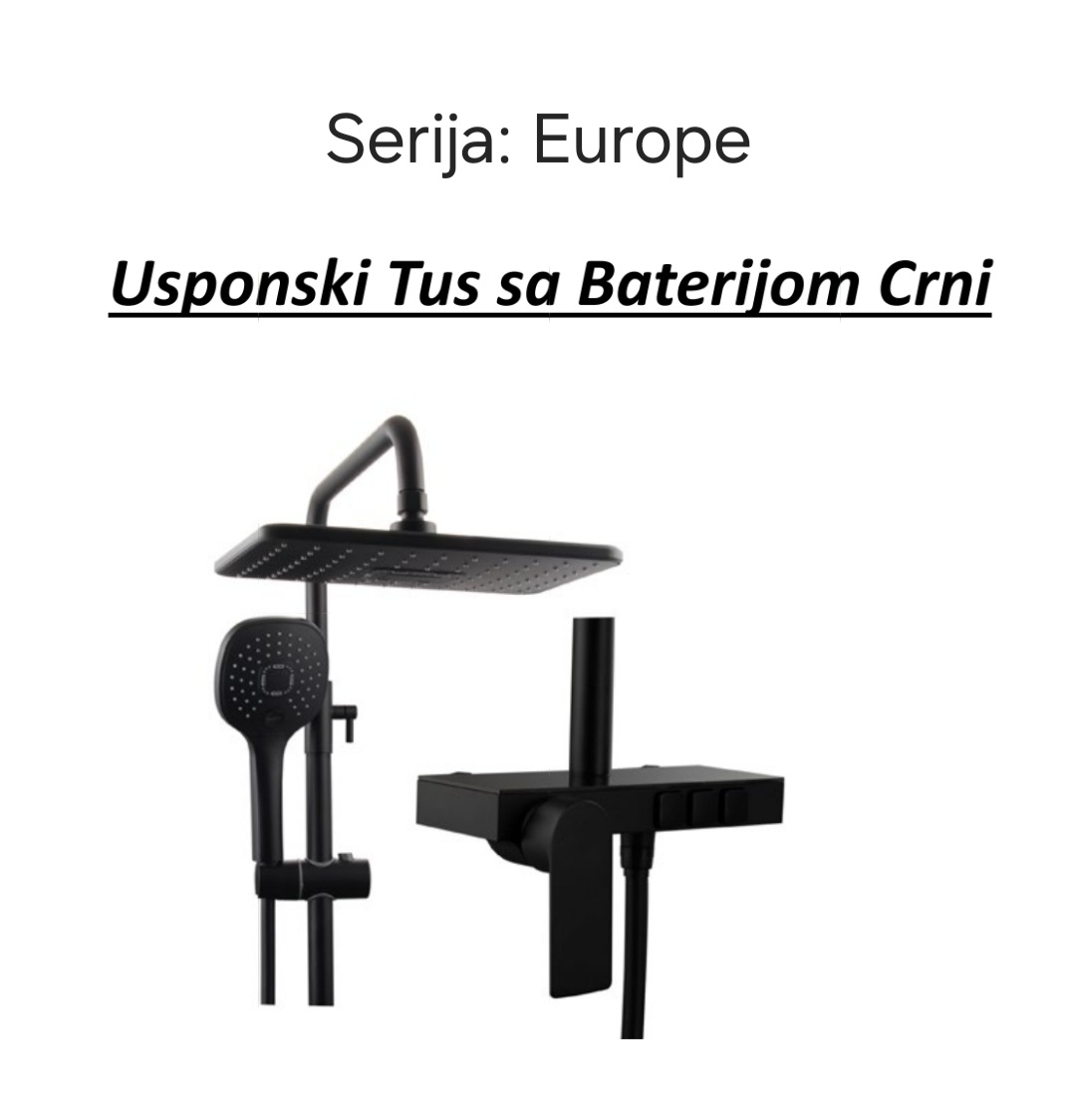 EUROPE Usponski tuš sa baterijom CRNI